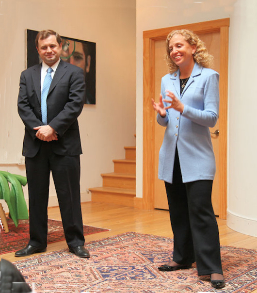 ![]() Debbie Wasserman Schultz represents Florida's 20th congressional district (Fort Lauderdale area), is Vice-Chair of the Democratic National Committee and Chief Deputy Whip. She was in town to receive Hadassah's Woman of the Year Award at Monticello, for her work in breast cancer awareness.