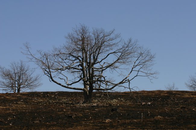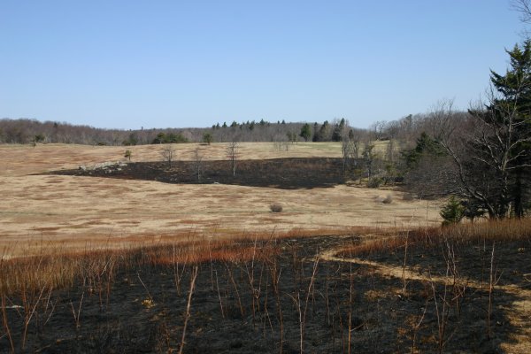 You would have to see it to believe it. Pictures do not do it justice. Approximately 35 acres of grass and brush burned to the ground. ![]() On Monday, firefighters from Shenandoah and other parks engaged in a prescribed burn of the [western] third of Big Meadows. Fire information officer Julena Campbell explained to Rob Hedelt of the Free Lance-Star in Fredericksburg, "that the Park Service uses these occasional [prescribed] burns for several purposes. 'Sometimes, it's done to reduce the accumulation of fuel left from a storm or other situation,' Campbell said. 'Other times, as in the case here [on Monday], it's being done to control vegetation and preserve cultural resources.' ![]() At Big Meadows, she said, [prescribed burns] are used each year to ensure the grassy expanse remains an open meadow. The flames stunt or keep down heavy brush that once grew shoulder-high in the meadow, and to keep the forest from slowly encroaching on the open space, Campbell explained. It's all done in part, she noted, because of the cultural importance of the meadow, which dates to the era when American Indians may have used an open meadow as their home. Likewise, she said, the Civilian Conservation Corps workers of the 1930s also made use of the open meadow, something the park makes note of" (Rob Hedelt, The Free Lance-Star, April 14, 2005). ![]() ![]() On Friday, Julena Campbell said that the burn had a relatively low immediate impact on animal life, noting that two-thirds of the meadow were unaffected. ![]() She observed that the presence of birds such as the American Kestrel [above] might be the result of easier access to prey such as mice and snakes. Ordinarily, mice are able to travel to their burrow openings in above ground runways beneath the brush and the shrubs. One consequence of the burn is that these runways are more readily visible. ![]() There was no shortage of birds on the meadow on Friday. ![]() ![]() There were also a plethera of white-tailed deer. ![]() Nonetheless, it was a stark contrast to what I saw at Big Meadows in September 2003. ![]() ![]() According to the park service, the "prescription [for such burns] includes weather, fuel moisture, and resource availability parameters. [Other burns] are planned for this year: one at sawmill and others for vista maintenance. Sawmill burn unit, near the town of Dooms, VA, on Purple Cow Rd. in Augusta County, was burned once before in 1999. The purpose of the burn was to improve the appearance of the area and to reduce the threat of uncontrollable wildland fire by reducing hazardous fuel conditions caused by insects and disease, storm damage, and exotic species. The park will continue this effort by burning the 55-acre unit again in March or April. [This was the last prescribed burn "specifically to reduce the amount of accumulated fuels on the forest floor" (Julena Campbell, Supervisory Park Ranger, electronic mail, April 15, 2005).] As part of an ongoing project, the park will [also] use fire to maintain open vistas by preventing encroachment by woody species at many scenic locations along Skyline Drive. The park will burn vistas near Swift Run, Hogwallow, and Fox Hollow Overlooks in March, April, or May. Additional vistas may be burned if weather conditions, fuel moisture, and resources permit" (Shenandoah Natoional Park News Release, March 21, 2005). The next prescribed burn for vista maintenance may be Friday, April 22nd or Saturday, April 23rd, assuming conditions permit. For another comparison of Big Meadows, see Big