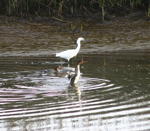 [Front] Red-Breasted Mergansers, [Back] Snowy