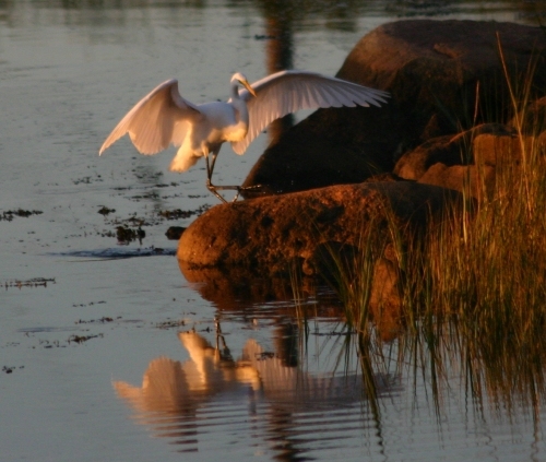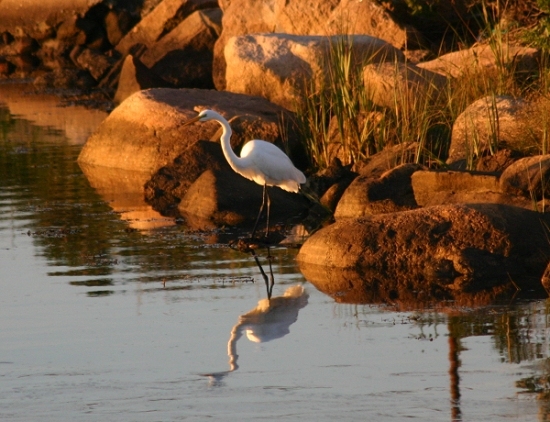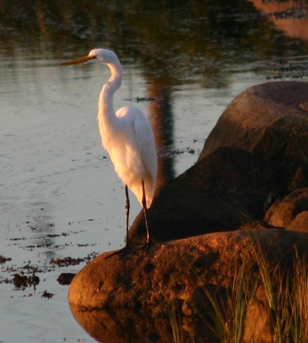 Great Egret, From Bridge Over Harbor Poind Channel,