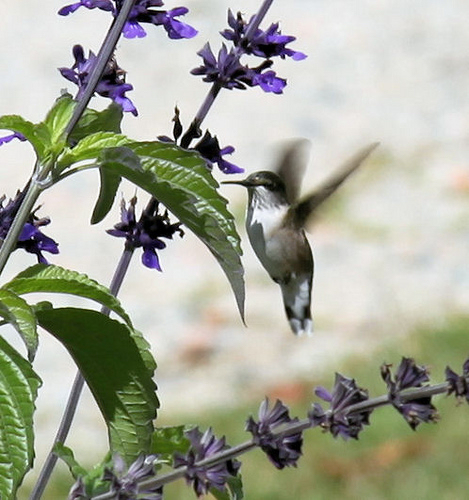 Female Ruby-throated Hummingbird, Salvia Indigo Spires, Charlotte Rhodes Park, Southwest Harbor, Maine, September 14, 2009