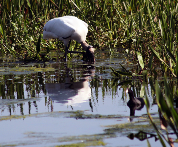 Wood Stork with American Coot, Green Cay Nature