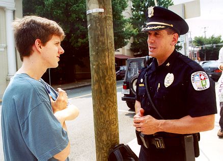In the meantime, Andrew Holden led demonstrators in a pep rally, members of the media conducted interviews and concerned citizen Hoy Loper chatted up the Charlottesville Chief of Police.
