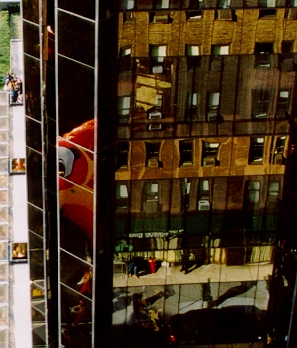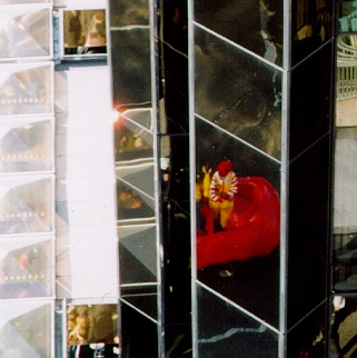 Reflection of Ronald McDonald in Big Red Shoe Car