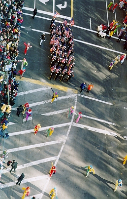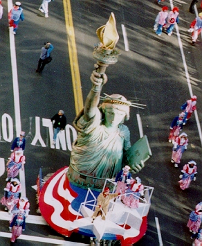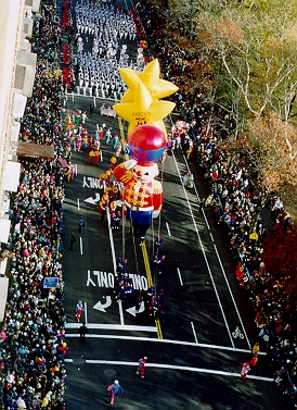 Signs of the Times - Flags of the 50 States, Statue of Liberty Float, Toy Soldier and 75th Anniversary Parade Star, Willard Scott on the Tom Turkey Float, Curious George, Pikachu and the Old Lahaina Luau Float