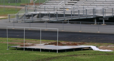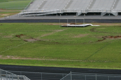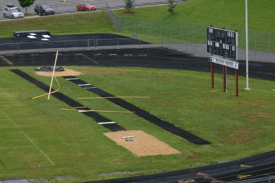 ![]() ![]() ![]() According to The Daily Progress, "Albemarle County Police are looking for information related to a vandalism spree at Monticello High School's track and football field. Someone climbed behind the wheel of a backhoe at the school, and drove it down the football field, knocking over both goalposts, digging holes in the field and running over chairs set up for graduation. The machine was left on top of a pile of broken chairs. Sgt. Scott Cox said the graduation ceremony, which was held as scheduled at 10 a.m. Saturday, was moved to the school's gymnasium. Police believe the incident occurred sometime between 3 and 5 a.m. Saturday. Anyone with information is asked to call Crimestoppers at (434) 977-4000 or (434) 296-5807." (In Brief, The Daily Progress, June 6, 2004). "Additionally, Monticello High School and its Boosters Club put
