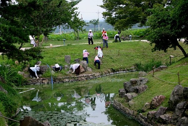 Weeding, Anapchi Lake, Kyongju, South Korea,