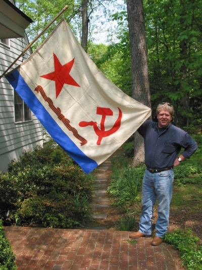 Bim Webb has been flying this Soviet Naval Flag in front of his house in Free Union for fifteen years in honor of May Day.
